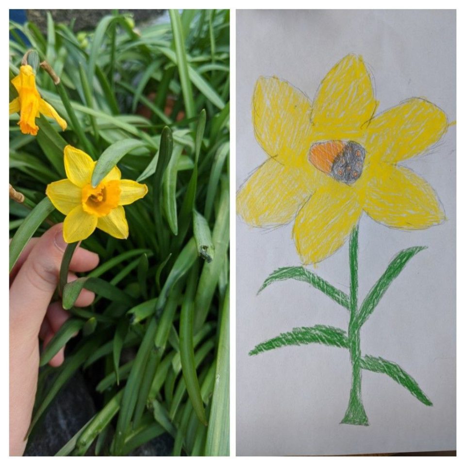 Fleurs de printemps : jonquille Envoyé le 29 mars 2020 par Famille Nicoloff Une jonquille dessinée et photographiée par Pénélope